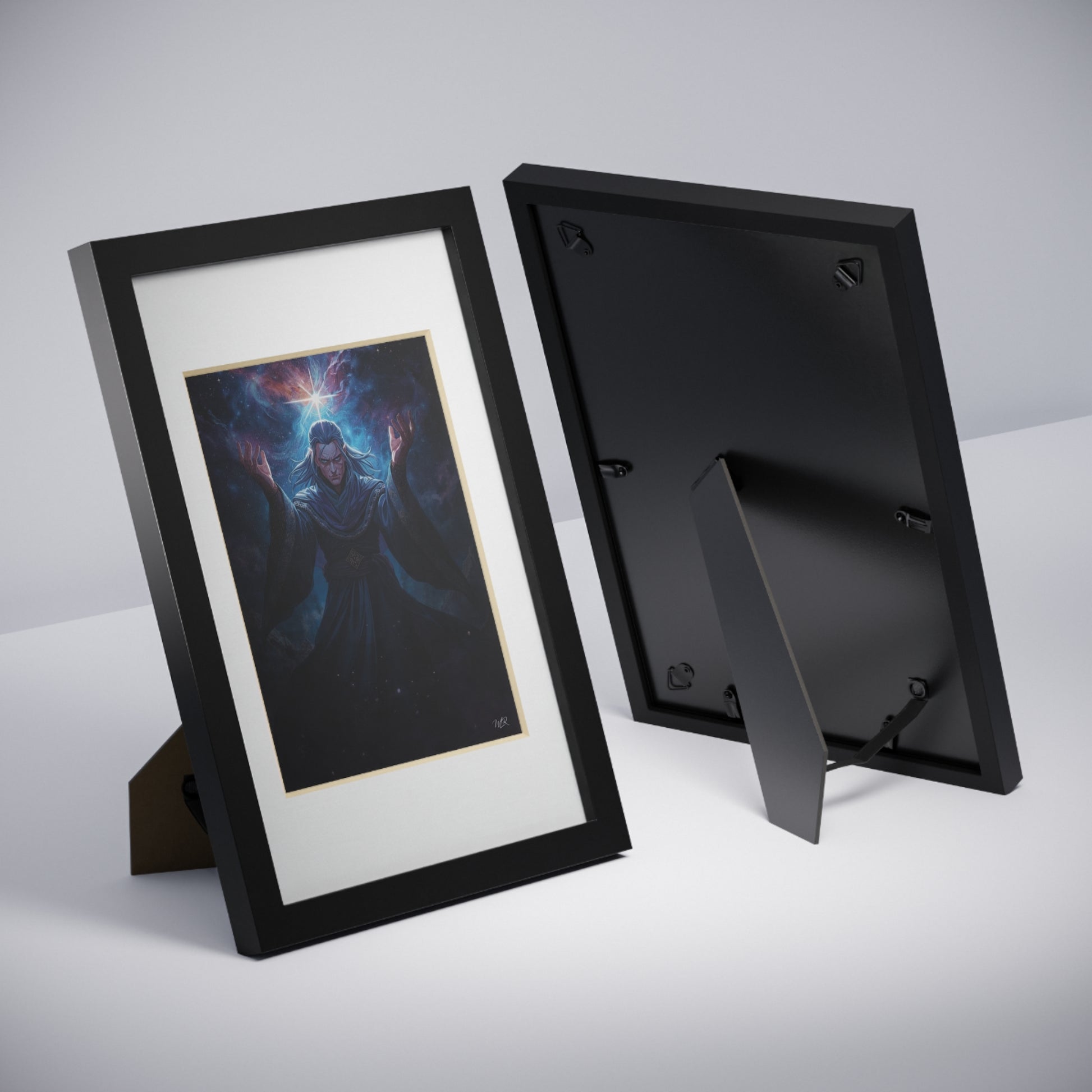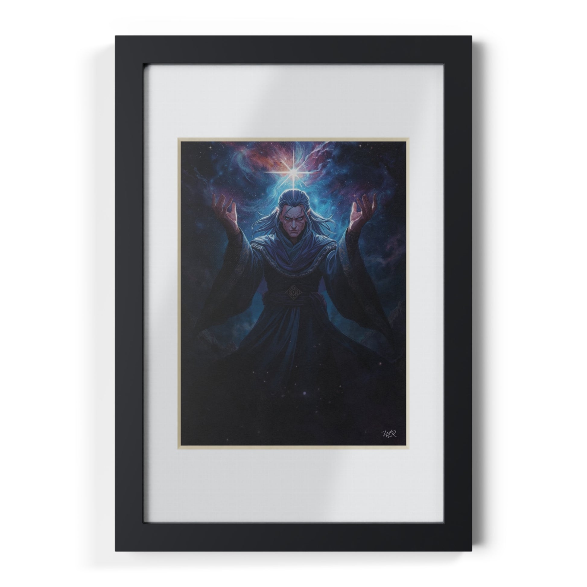Bring a touch of cosmic fantasy to your space with this framed vertical poster featuring a sorcerer casting a spell turning the sky into galaxies. The glowing dramatic light adds a magical vibe to any room. Perfect for fantasy lovers, space enthusiasts, and those who enjoy mystical artwork. Ideal for decorating bedrooms, living rooms, or home offices.
